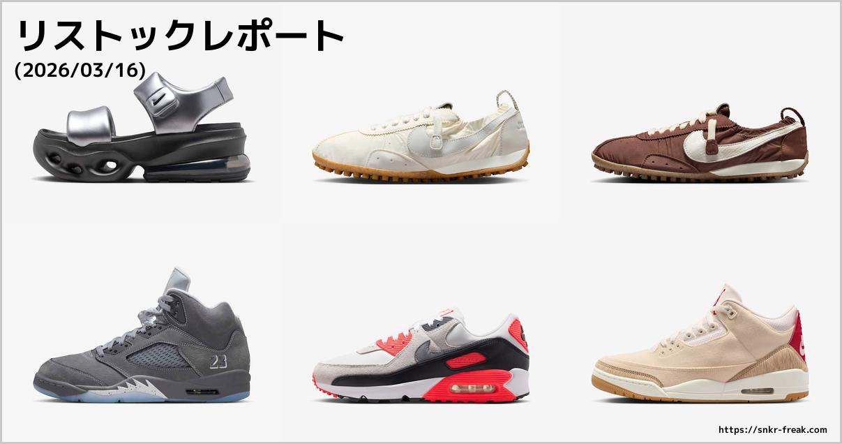 ナイキスニーカーのリストックレポート(2026年3月16日)